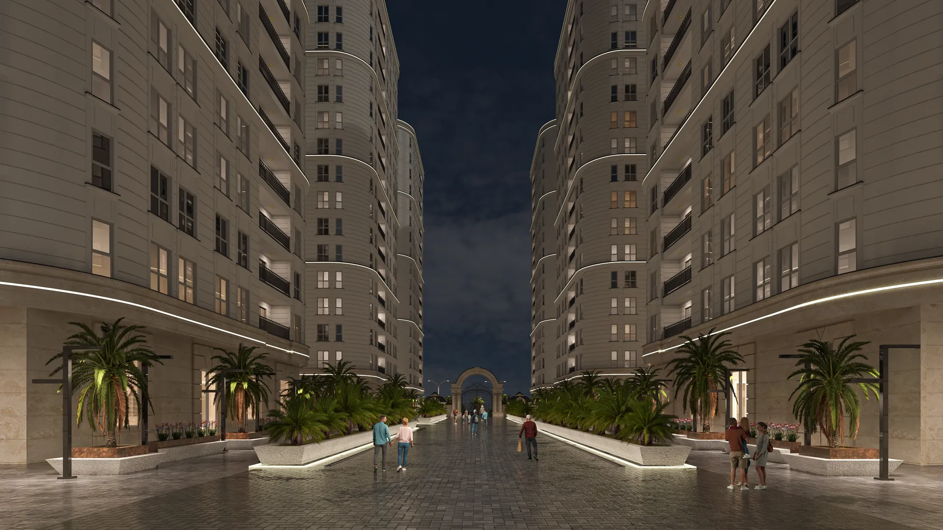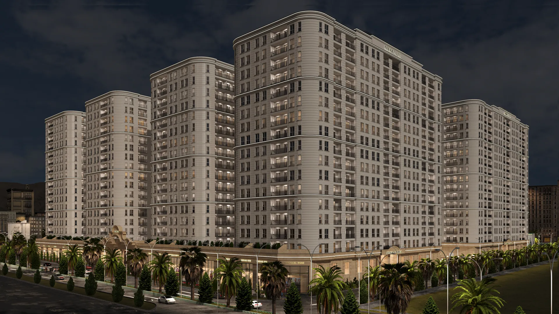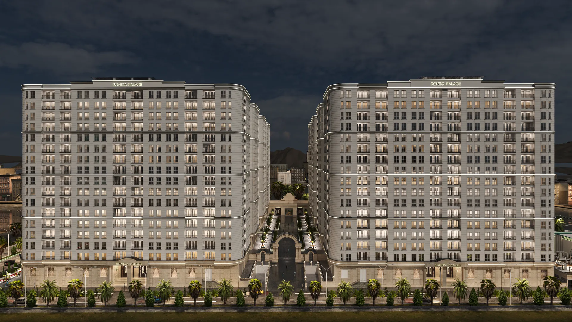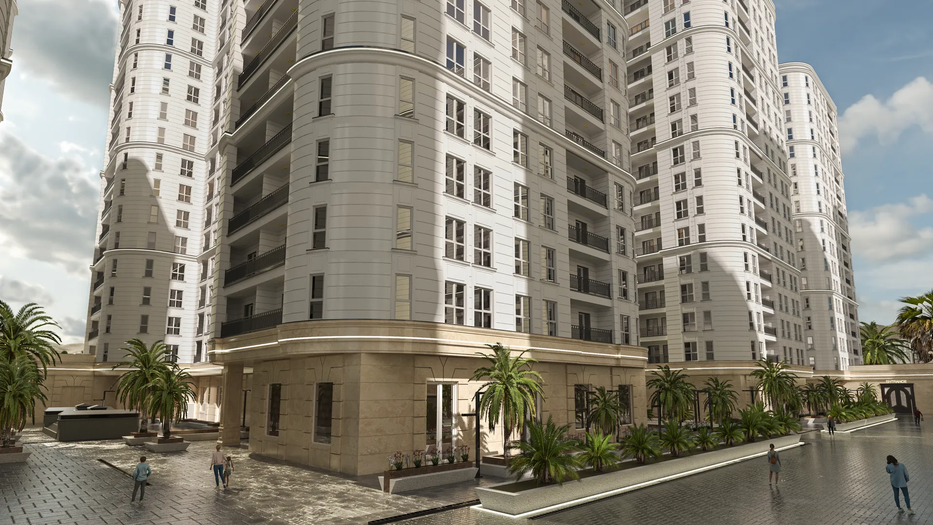 - معماری کلاسیک و باوقار: طراحی نما و مشاعات با سنگکاریهای گسترده و جزئیات دقیق کلاسیک انجام شده که هویت بصری برند رونیکا پالاس را حفظ میکند.